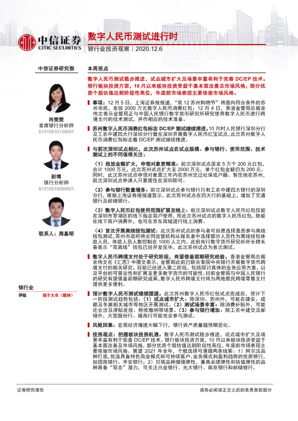 【中信证券】【20201206】银行业投资观察:数字人民币测试进行时-9页