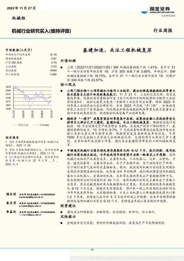 【国金证券】【20221127】机械行业周报:基建加速,关注工程机械复苏-19页
