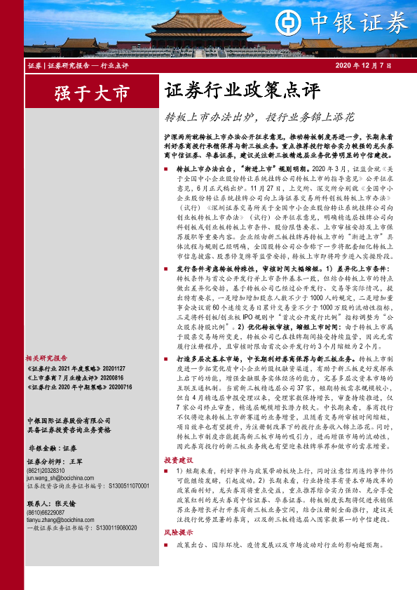 【中银证券】【20201207】证券行业政策点评:转板上市办法出炉,投行业务锦上添花-5页