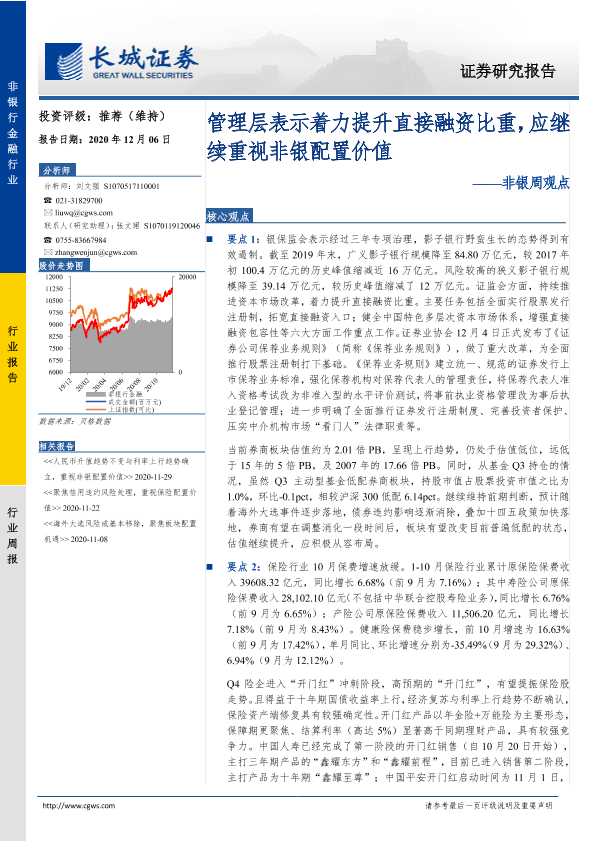 【长城证券】【20201206】非银周观点:管理层表示着力提升直接融资比重,应继续重视非银配置价值-37页