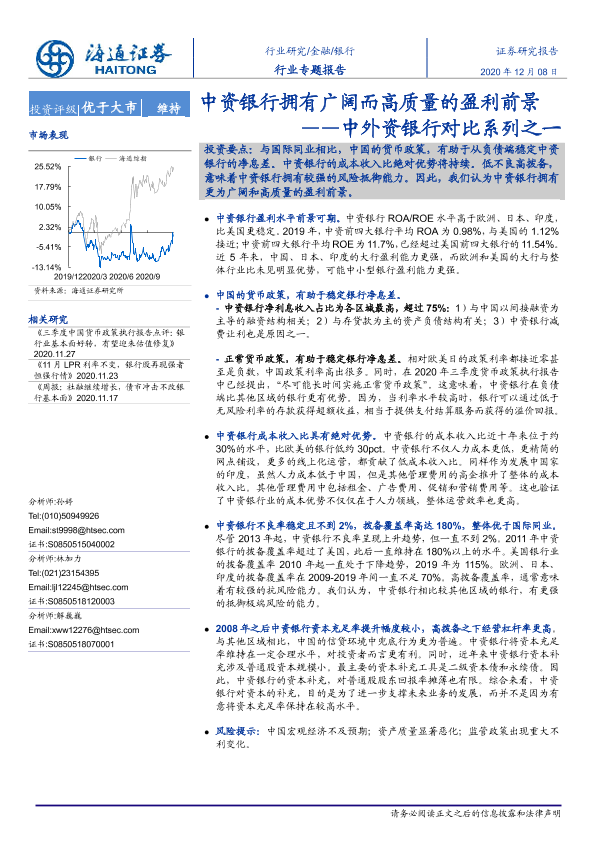 【海通证券】【20201208】中外资银行对比系列之一:中资银行拥有广阔而高质量的盈利前景-14页