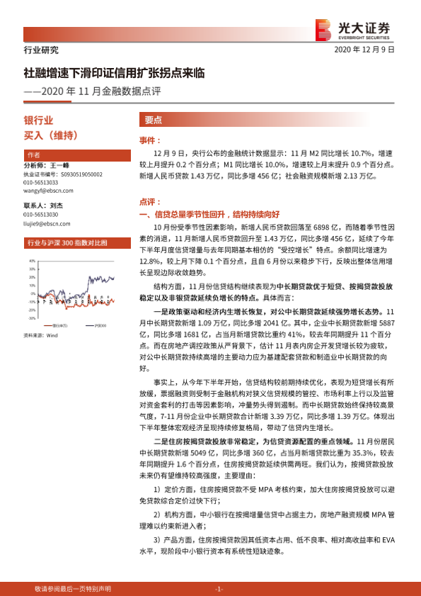 【光大证券】【20201209】2020年11月金融数据点评:社融增速下滑印证信用扩张拐点来临-6页