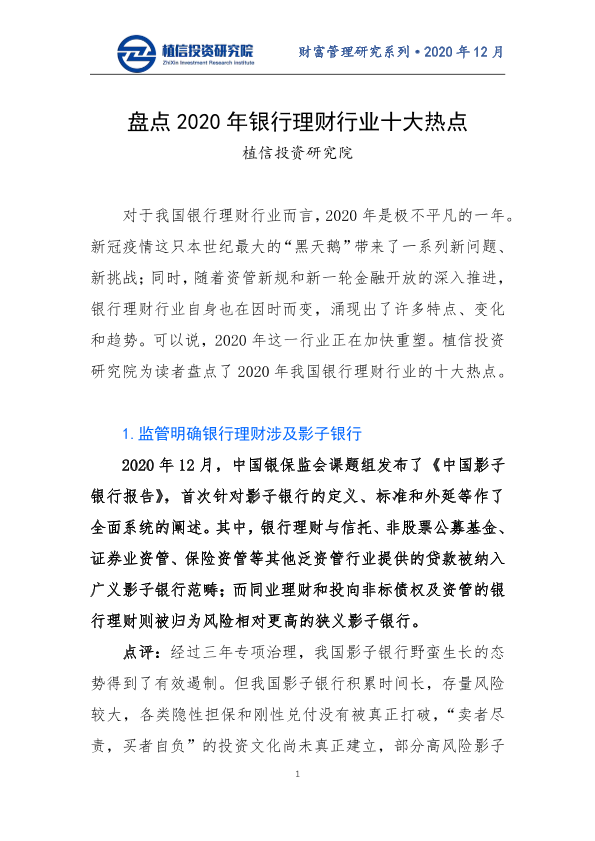 【植信投资研究院】【202012】盘点2020年银行理财行业十大热点-9页