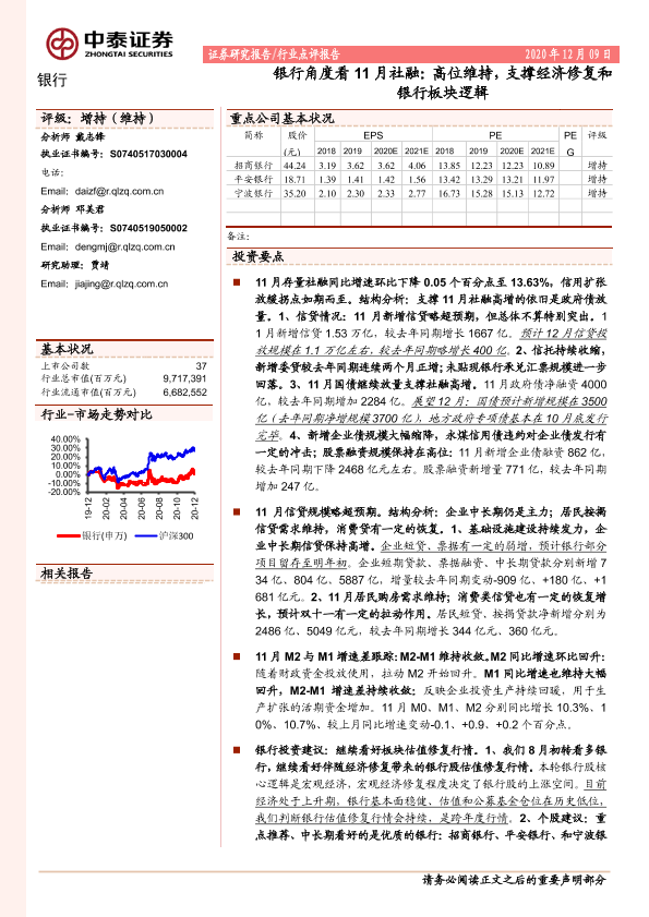 【中泰证券】【20201209】银行角度看11月社融:高位维持,支撑经济修复和银行板块逻辑-14页