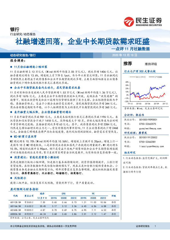 【民生证券】【20201210】银行点评11月社融数据:社融增速回落,企业中长期贷款需求旺盛-9页