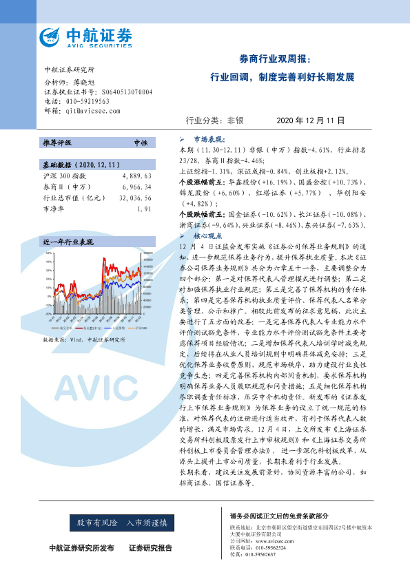 【中航证券】【20201211】券商行业双周报:行业回调,制度完善利好长期发展-5页