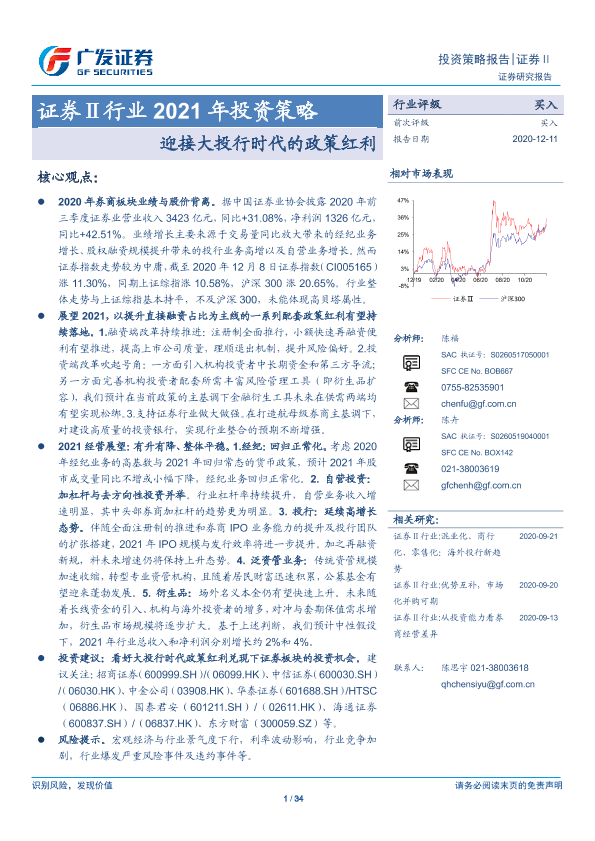 【广发证券】【20201211】证券Ⅱ行业2021年投资策略:迎接大投行时代的政策红利-34页