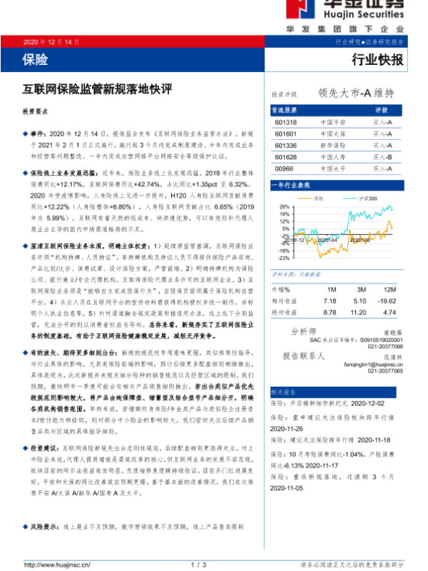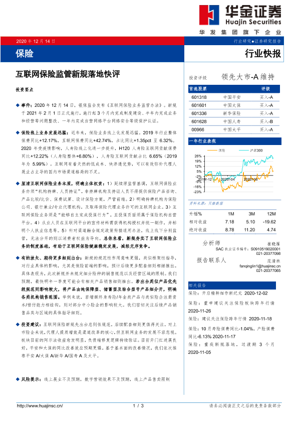 【华金证券】【20201214】保险行业快报:互联网保险监管新规落地快评-3页