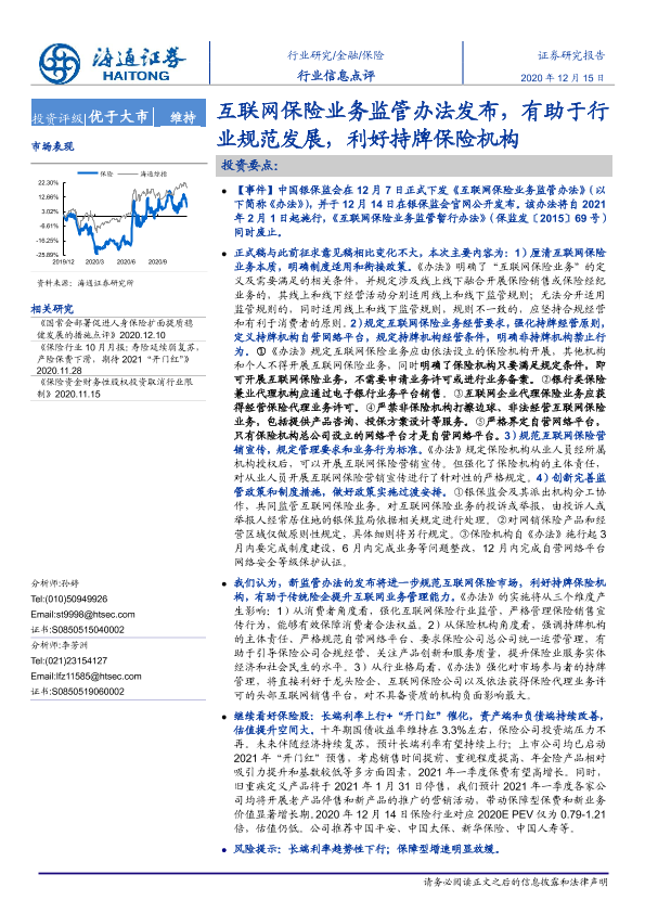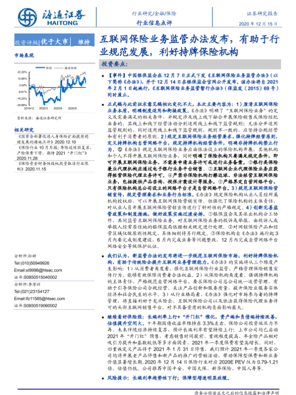 【海通证券】【20201215】保险行业信息点评:互联网保险业务监管办法发布,有助于行业规范发展,利好持牌保险机构-5页