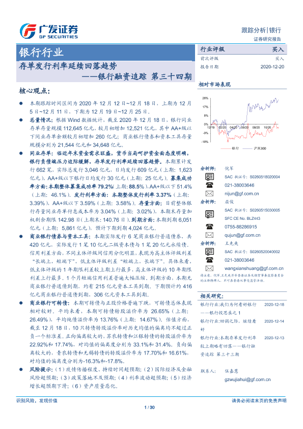 【广发证券】【20201220】银行融资追踪第三十四期-存单发行利率延续回落趋势-30页