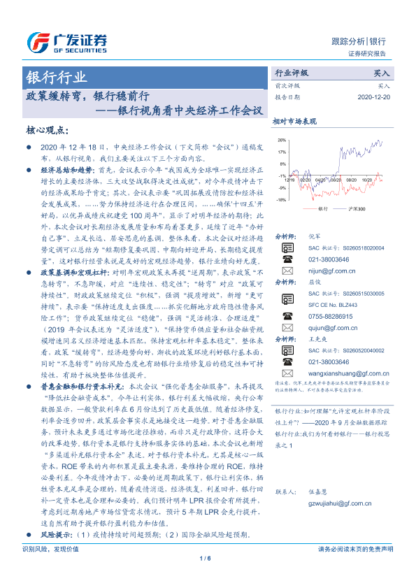 【广发证券】【20201220】银行视角看中央经济工作会议:政策缓转弯,银行稳前行-6页