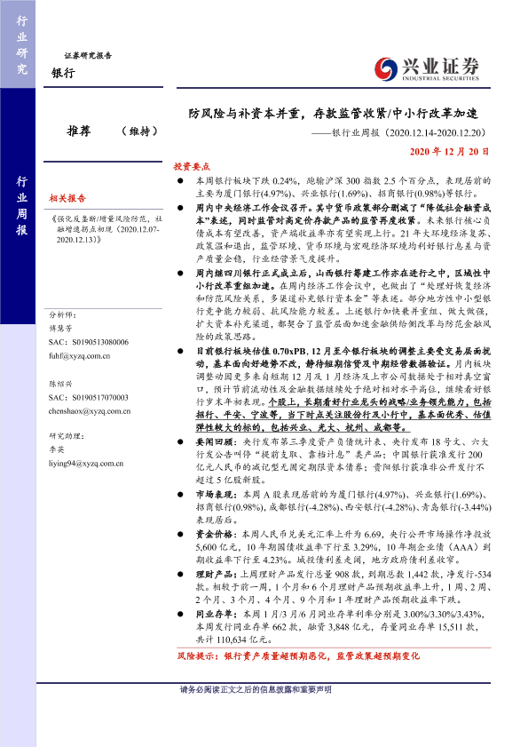 【兴业证券】【20201220】防风险与补资本并重,存款监管收紧 中小行改革加速-12页