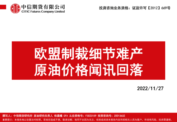 【中信期货】【20221127】欧盟制裁细节难产,原油价格闻讯回落-63页