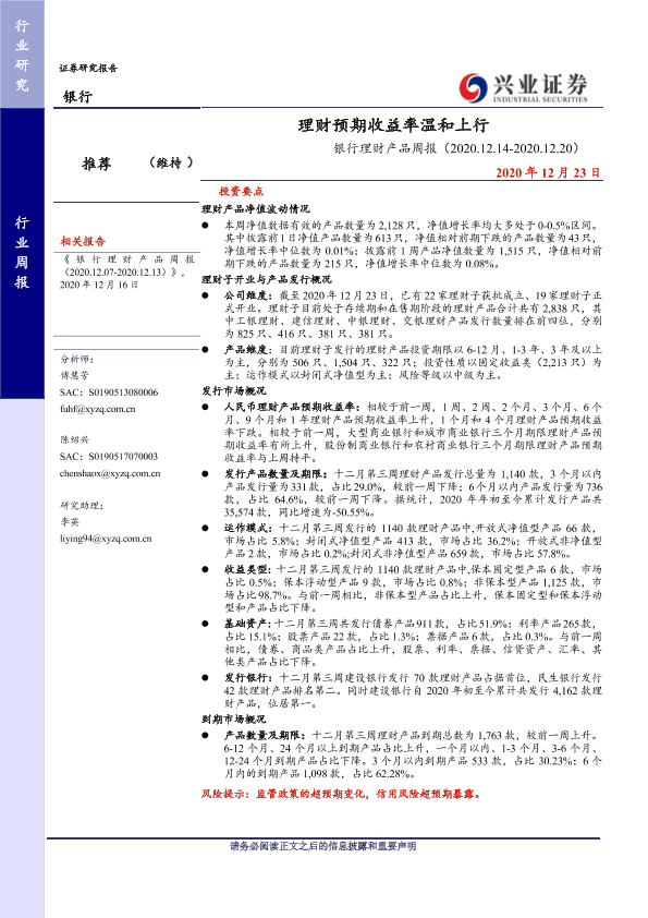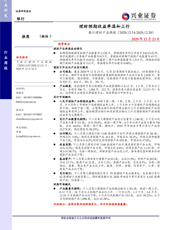 【兴业证券】【20201223】银行理财产品周报:理财预期收益率温和上行-20页