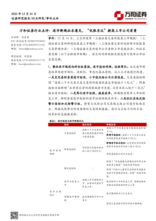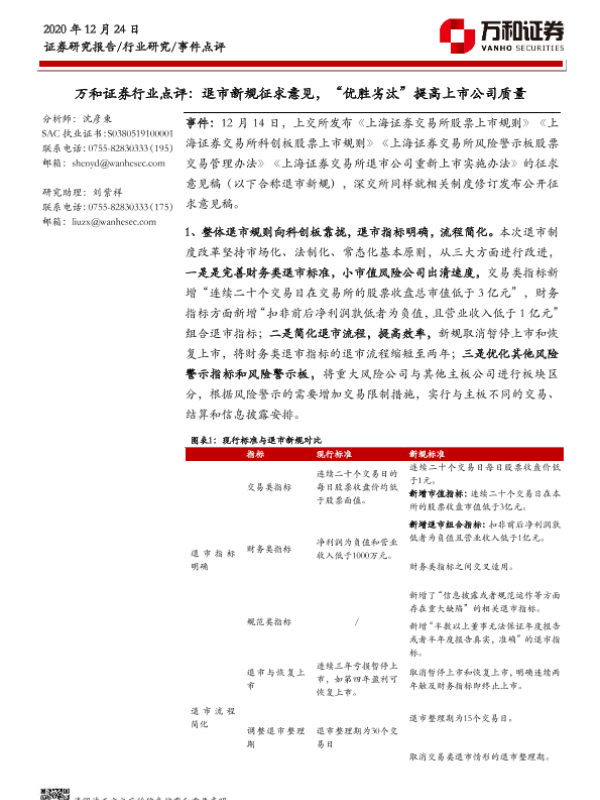 【万和证券】【20201224】证券行业点评:退市新规征求意见,“优胜劣汰”提高上市公司质量-5页