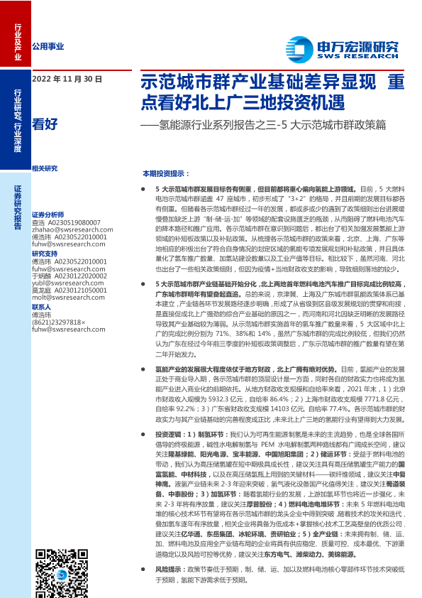 【申万宏源】【20221130】氢能源行业系列报告之三_5大示范城市群政策篇:示范城市群产业基础差异显现重点看好北上广三地投资机遇-29页
