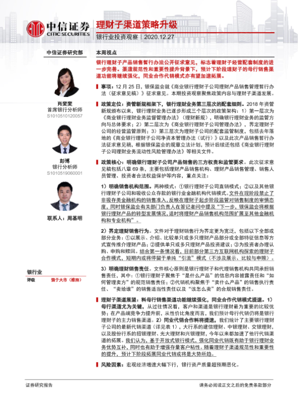【中信证券】【20201227】银行业投资观察:理财子渠道策略升级-11页