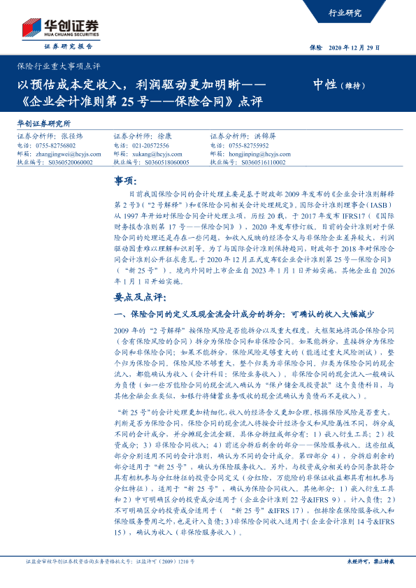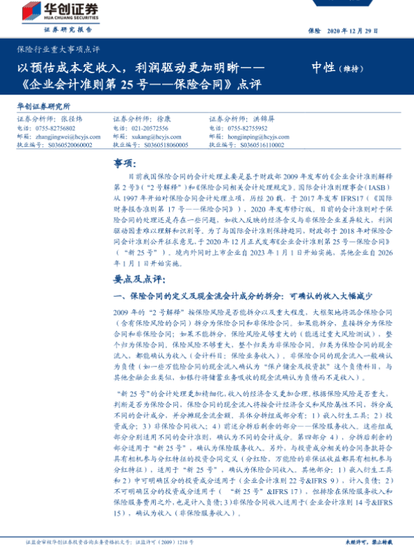 【华创证券】【20201229】保险行业重大事项点评:《企业会计准则第25号——保险合同》点评-12页