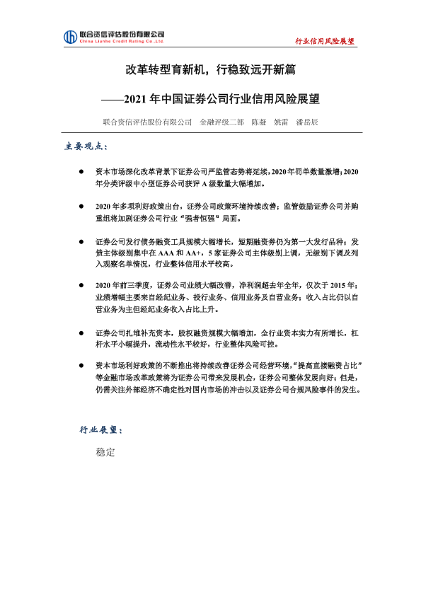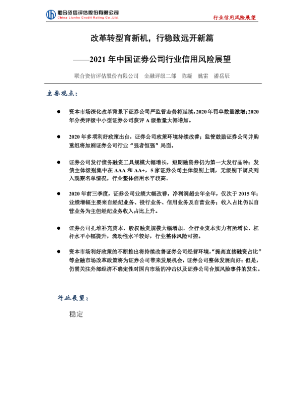 【联合资信】【20201229】2021年中国证券公司行业信用风险展望-15页