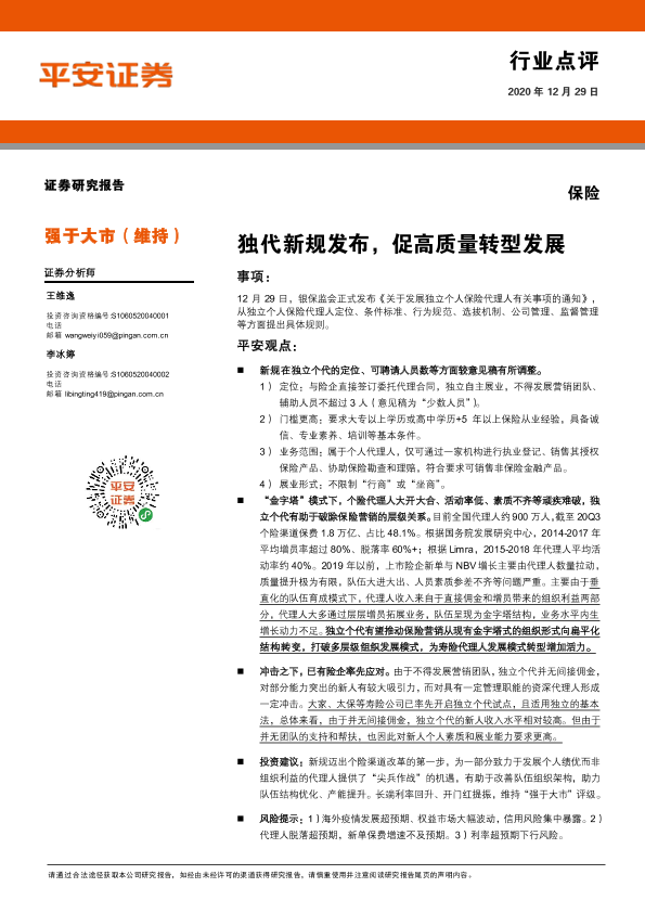 【平安证券】【20201229】保险行业点评:独代新规发布,促高质量转型发展-2页