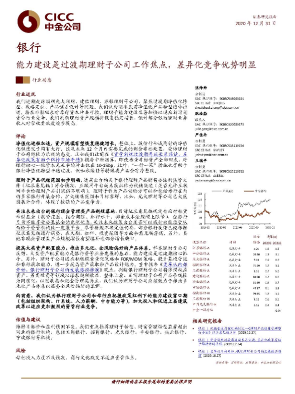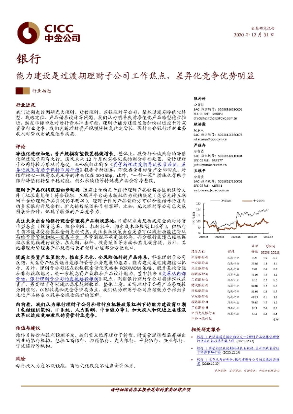 【中金公司】【20201231】银行行业:能力建设是过渡期理财子公司工作焦点,差异化竞争优势明显-10页