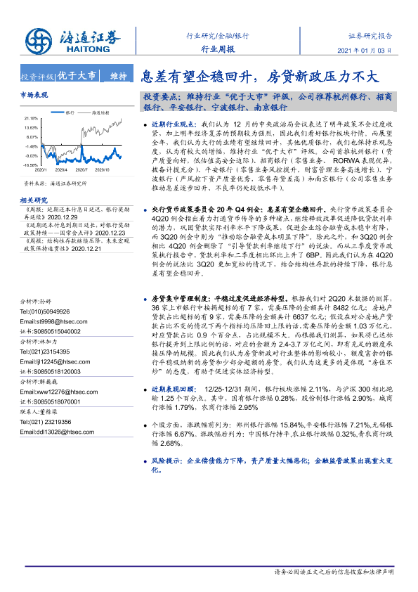 【海通证券】【20210103】银行行业周报:息差有望企稳回升,房贷新政压力不大-8页