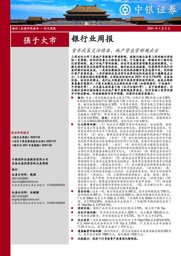 【中银证券】【20210103】银行业周报:货币政策灵活精准,地产贷监管新规出台-11页