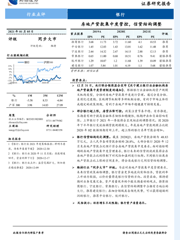 【财信证券】【20210105】银行业:房地产贷款集中度管控,信贷结构调整-6页