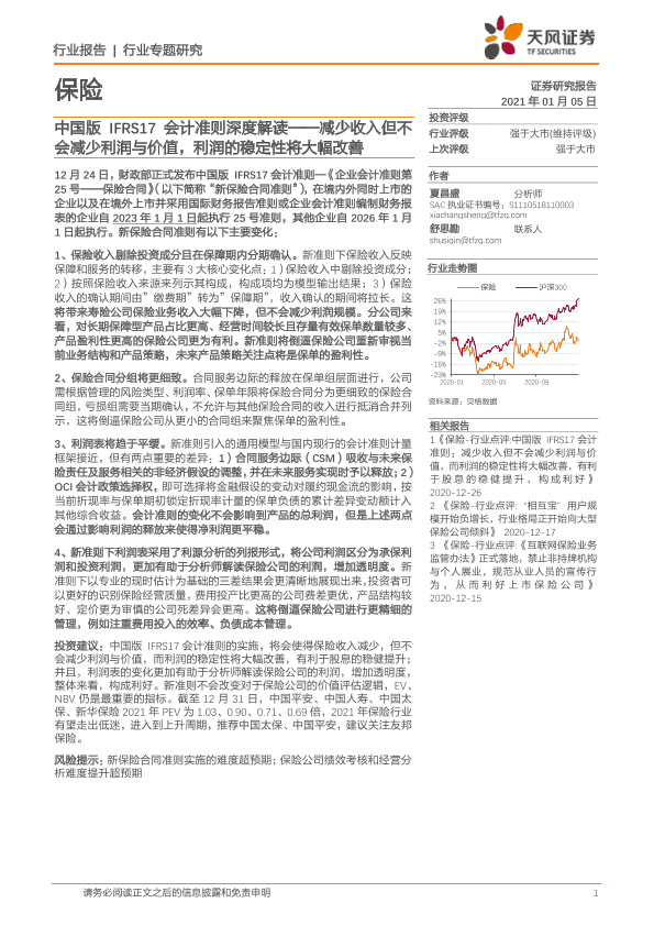 【天风证券】【20210105】中国版IFRS17会计准则深度解读——减少收入但不会减少利润与价值,利润的稳定性将大幅改善-10页