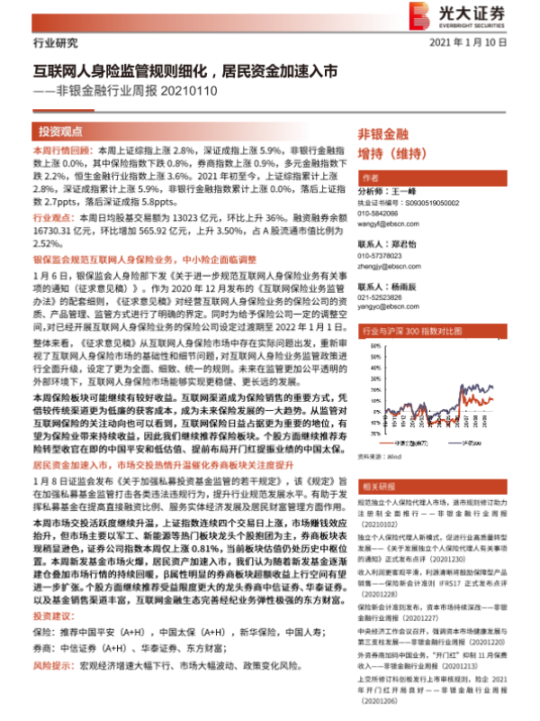 【光大证券】【20210110】非银金融行业周报:互联网人身险监管规则细化,居民资金加速入市-13页