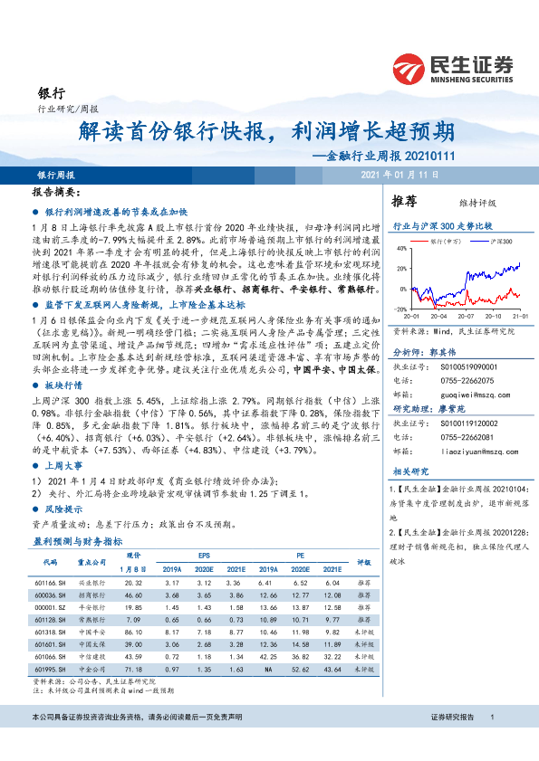 【民生证券】【20210111】解读首份银行快报,利润增长超预期-25页