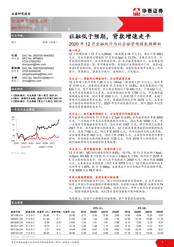 【华泰证券】【20210113】2020年12月金融统计与社会融资规模数据解析:社融低于预期,贷款增速走平-9页