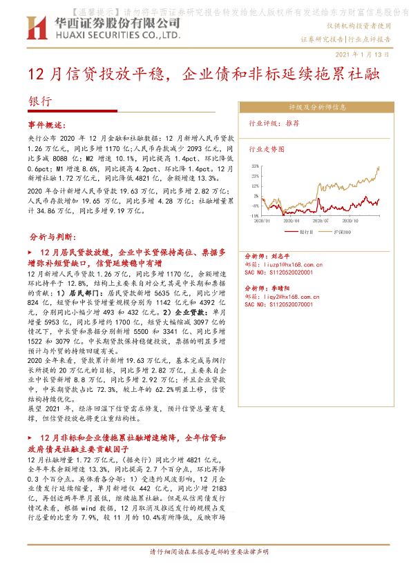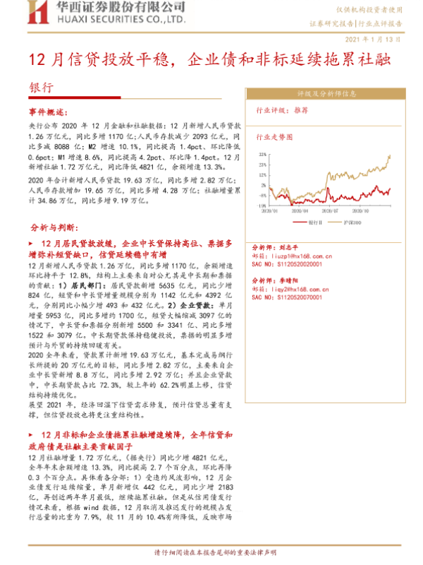 【华西证券】【20210113】12月信贷投放平稳,企业债和非标延续拖累社融-4页