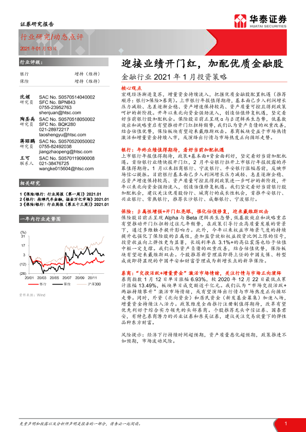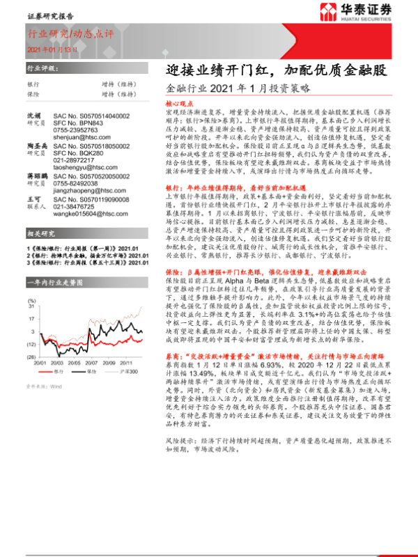 【华泰证券】【20210113】金融行业2021年1月投资策略:迎接业绩开门红,加配优质金融股-16页