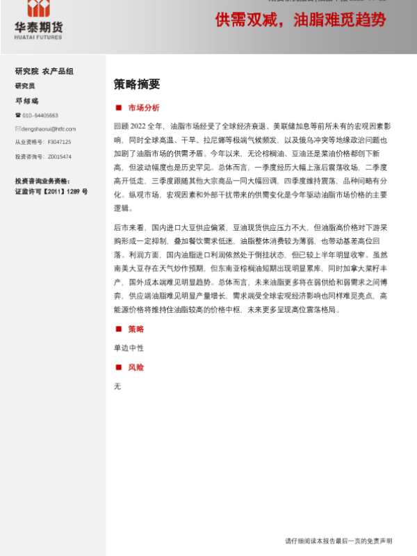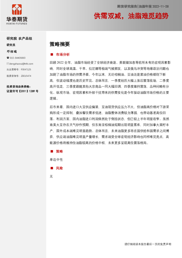 【华泰期货】【20221128】油脂年报:供需双减,油脂难觅趋势-16页