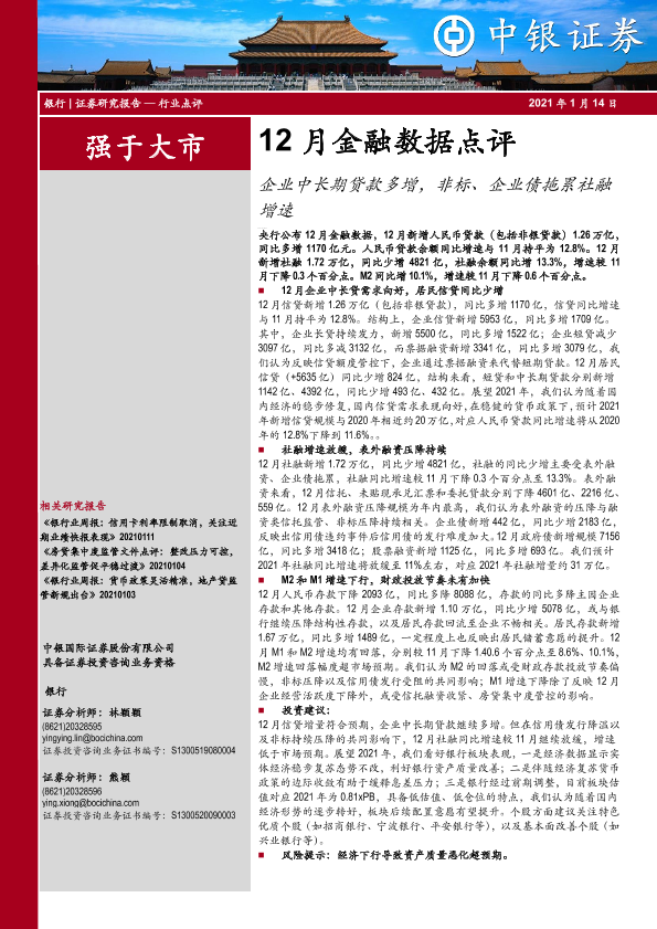 【中银证券】【20210114】12月金融数据点评:企业中长期贷款多增,非标、企业债拖累社融增速-6页