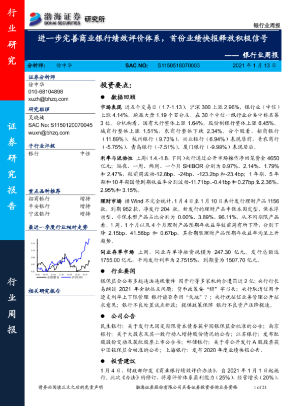 【渤海证券】【20210115】进一步完善商业银行绩效评价体系,首份业绩快报释放积极信号-21页