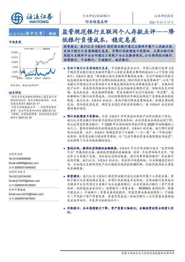 【海通证券】【20210117】监管规范银行互联网个人存款点评——降低银行负债成本,稳定息差-2页
