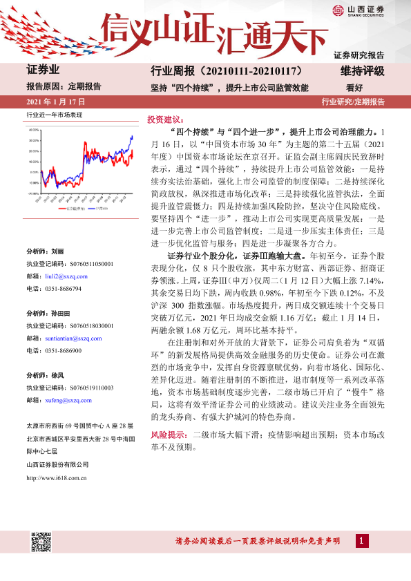 【山西证券】【20210117】证券行业周报:坚持“四个持续”,提升上市公司监管效能-9页