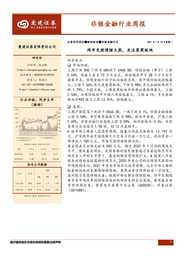 【爱建证券】【20210118】非银金融行业周报:两市交投情绪火热,关注券商板块-10页