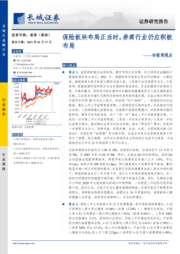 【长城证券】【20210117】非银周观点:保险板块布局正当时,券商行业仍应积极布局-36页