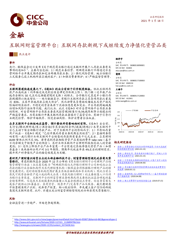【中金公司】【20210118】互联网财富管理平台:互联网存款新规下或继续发力净值化资管品类-5页