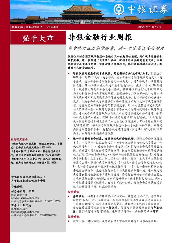 【中银证券】【20210118】非银金融行业周报:集中修订证券期货规章,进一步完善债委会制度-10页