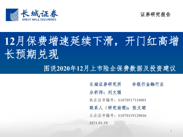【长城证券】【20210118】图说2020年12月上市险企保费数据及投资建议-31页