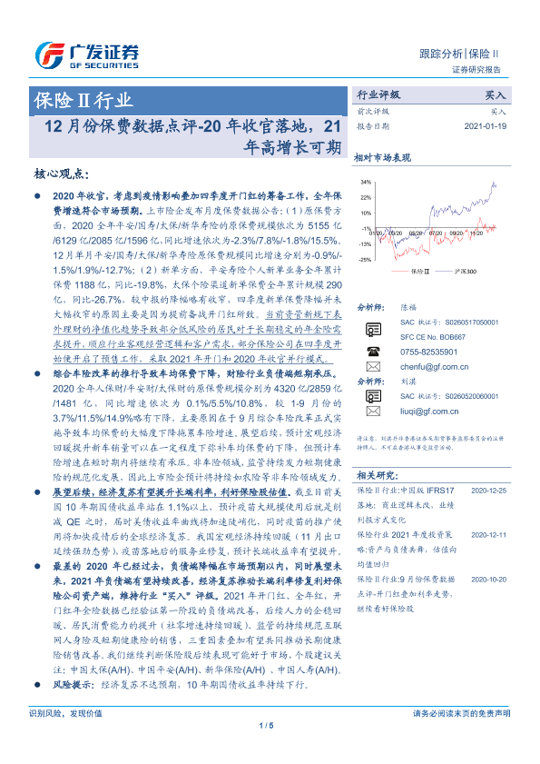 【广发证券】【20210119】12月份保费数据点评-20年收官落地,21年高增长可期-5页
