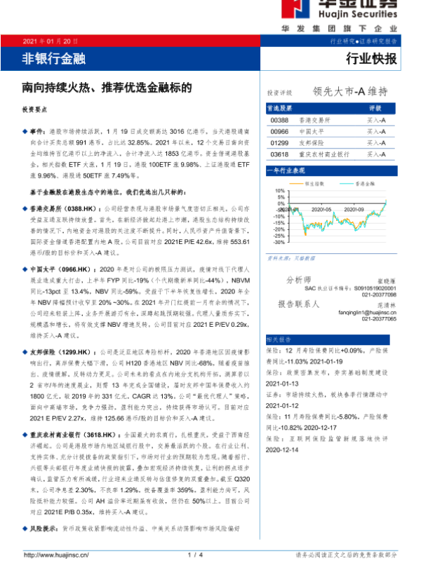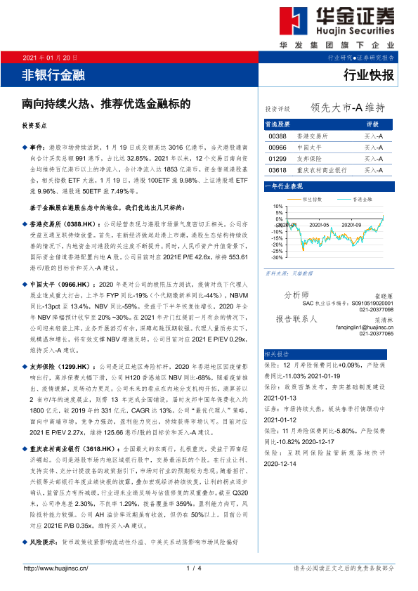 【华金证券】【20210120】非银行金融:南向持续火热、推荐优选金融标的-4页