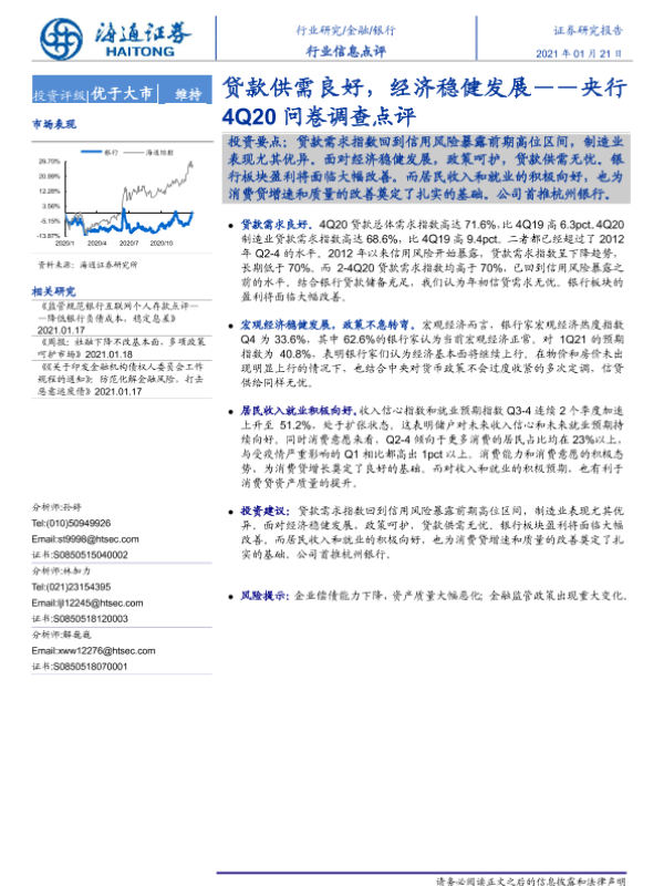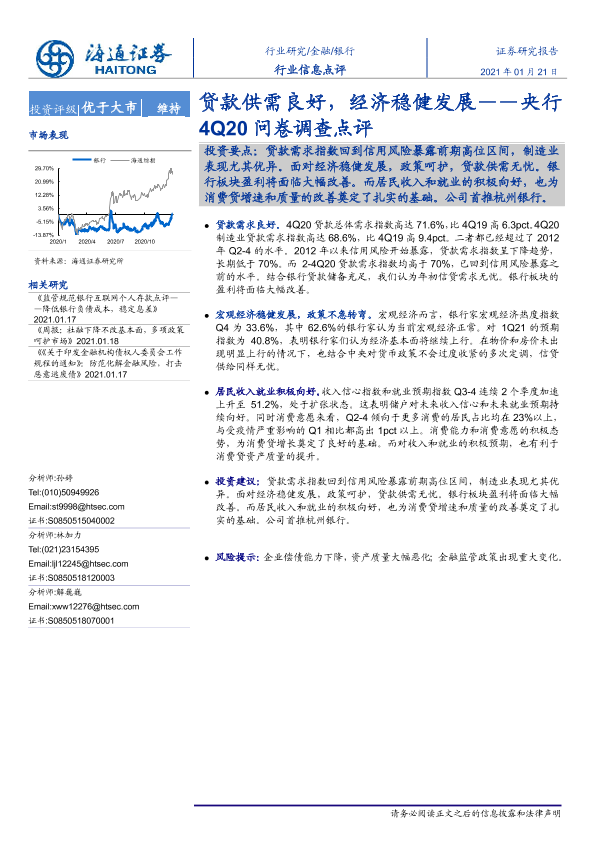 【海通证券】【20210121】央行4Q20问卷调查点评-贷款供需良好,经济稳健发展-4页