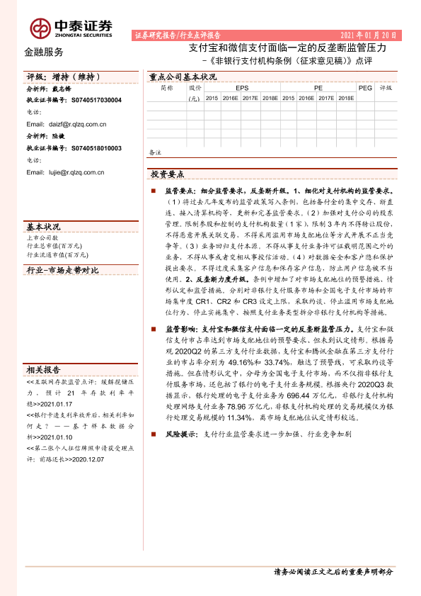 【中泰证券】【20210120】非银行支付机构条例(征求意见稿)点评-6页