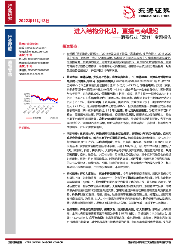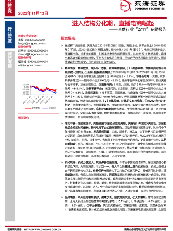 【东海证券】【20221113】消费行业“双11”专题报告:进入结构分化期,直播电商崛起-27页