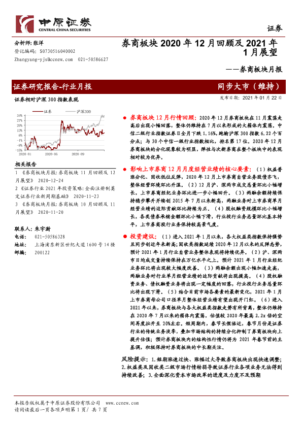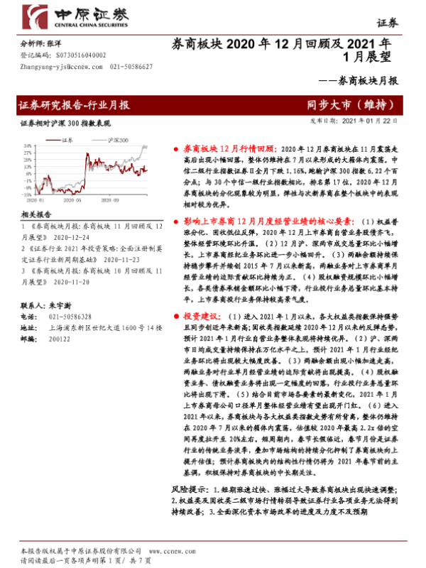 【中原证券】【20210122】券商板块2020年12月回顾及2021年1月展望-7页